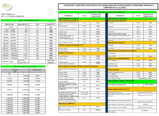 CONDITIONS TARIFAIRES APPLICABLES AUX OPERATIONS DES PARTICULIERS ET PERSONNES MORALES A COMPTER DU 01/07/2025